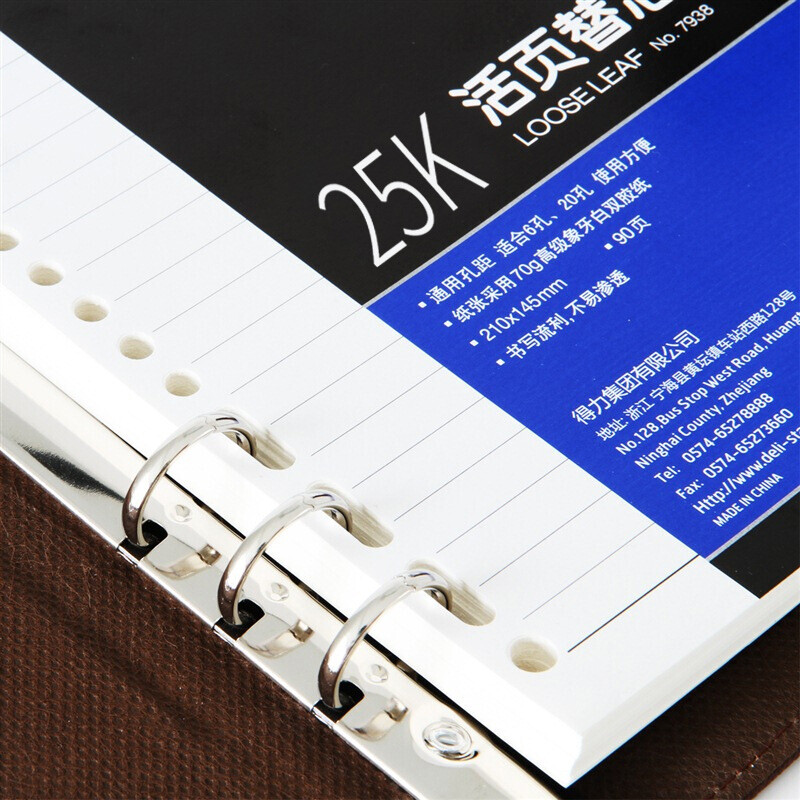 得力(deli)25K90張活頁筆記本替芯 適合6孔20孔記事本子7938 自營
