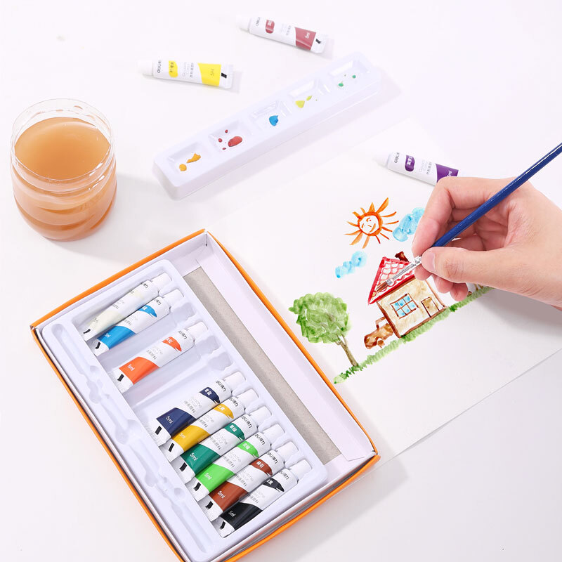 得力(deli)水粉顏料 12色5ml 畫畫美術(shù)專用 水粉畫學(xué)生兒童入門級(jí)繪畫套裝 (含毛筆調(diào)色格) 開學(xué)禮物73862 自營