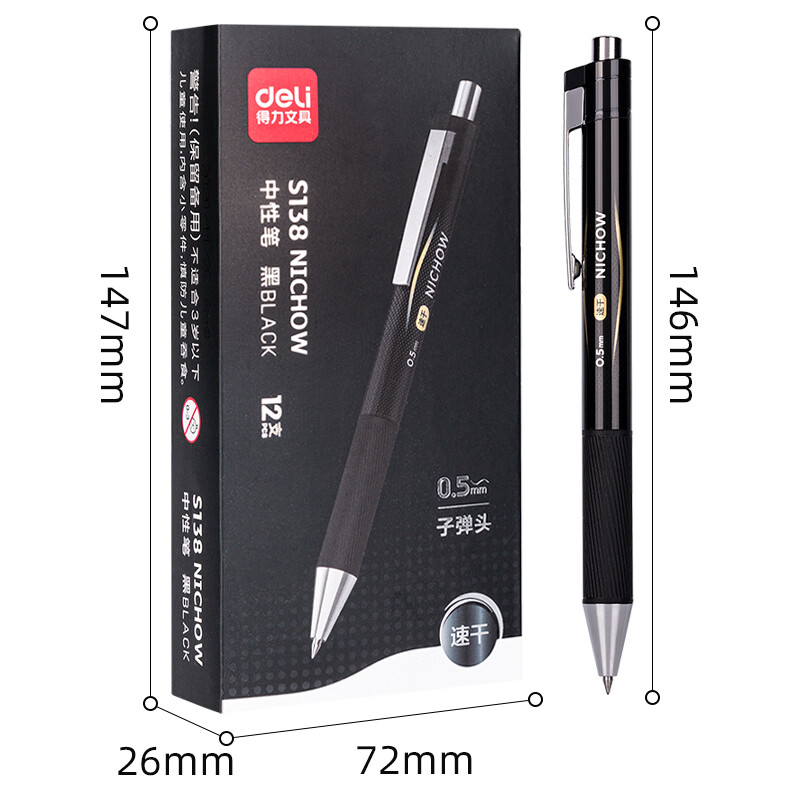 得力(deli)諾上速干按動(dòng)中性筆簽字筆12支 子彈頭0.5mmDL-S138 自營(yíng)