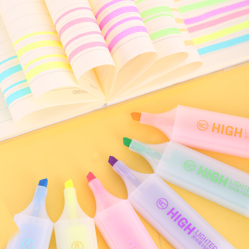 得力(deli)6色熒光筆 重點(diǎn)醒目標(biāo)記筆 水性彩色手帳用記號筆6支/袋 自營