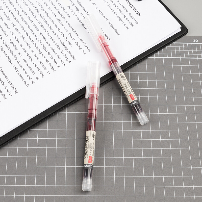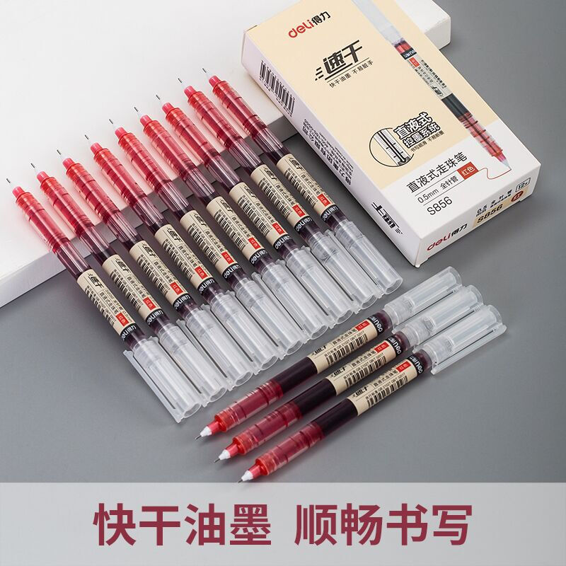 得力(deli)直液筆走珠簽字筆 學(xué)生辦公中性筆 ins無印簡約風(fēng) 0.5mm全針管12支/盒S856紅 自營