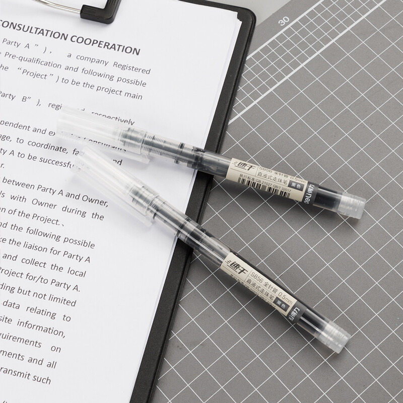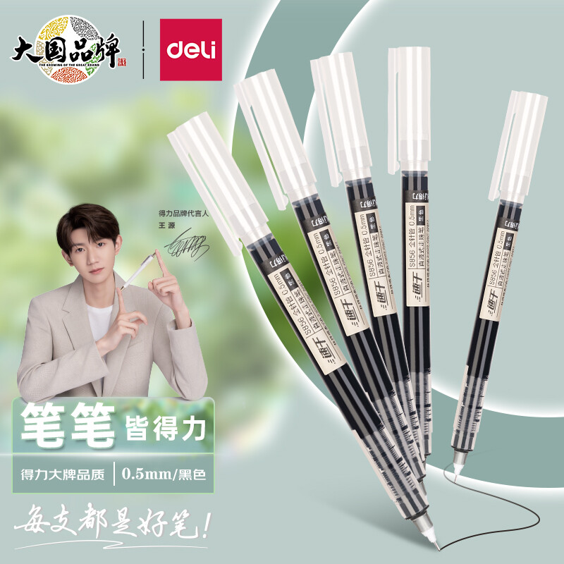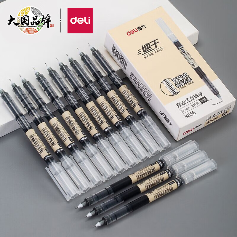 得力(deli)直液筆簽字筆 0.5mm全針管中性筆 商務辦公學生水筆走珠筆 黑色 12支/盒S856 自營