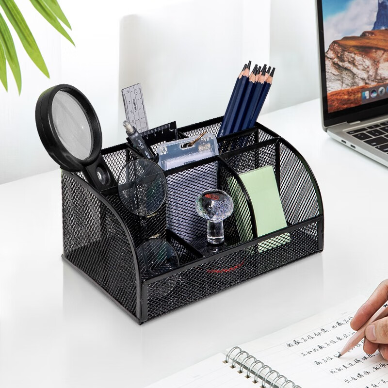 得力(deli)多功能七格組合筆筒 金屬網(wǎng)紋桌面收納盒 辦公用品 黑色8903 自營