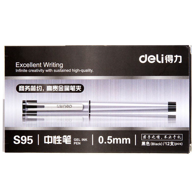 得力(deli)0.5mm商務中性筆水筆簽字筆 辦公用品 12支/盒黑 自營