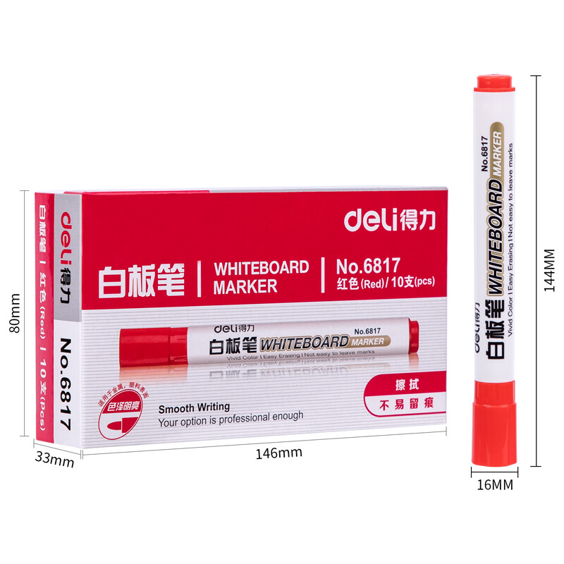 得力(deli)白板筆 色澤明亮可擦易擦 紅色10支/盒6817 辦公用品(新老款隨機(jī)發(fā)貨) 自營