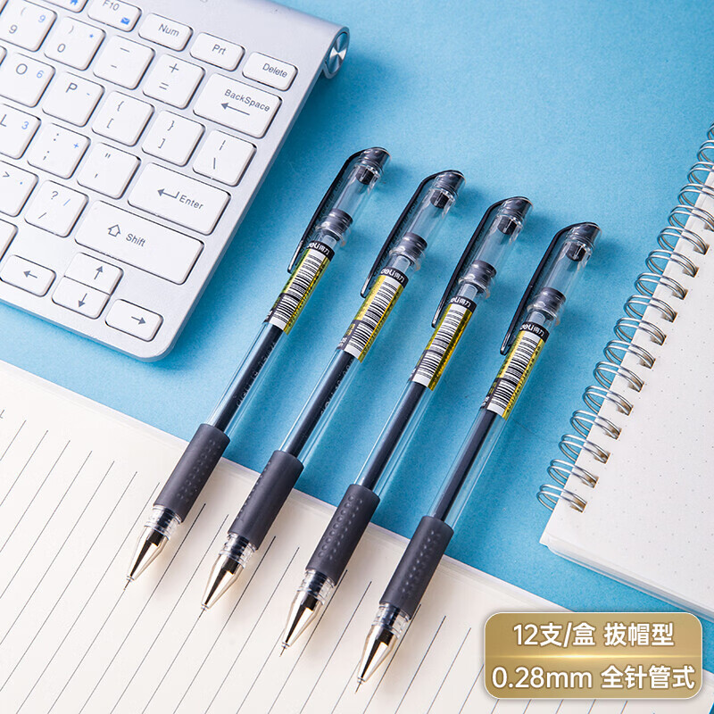 得力(deli)0.28mm財務(wù)專用中性筆 辦公用品 全針管12支盒S820 自營
