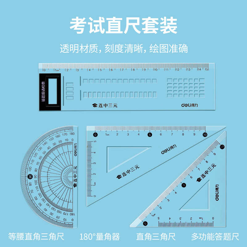 得力(deli)連中三元考試套裝 中性筆 替芯 涂卡筆 橡皮 直尺套裝DL-6669 考試用品 自營(yíng)