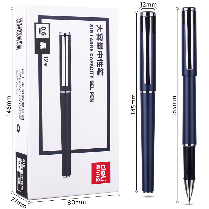 得力(deli)大容量辦公中性筆 簽字筆12支 0.5mm子彈頭黑色 自營