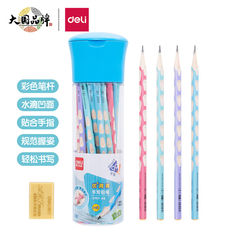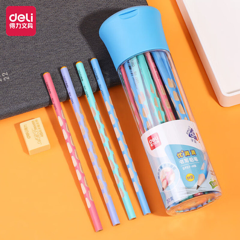 得力(deli)洞洞筆鉛筆 30支HB三角桿彩桿易抓握書寫鉛筆兒童矯姿鉛筆 學(xué)生練字筆 開學(xué)禮物S957-HB 自營